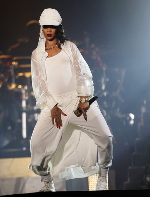 Rihanna não estava nada ousada, em show nos Emirados Árabes a cantora resolveu utilizar um figurino mais comportado. Confira:
