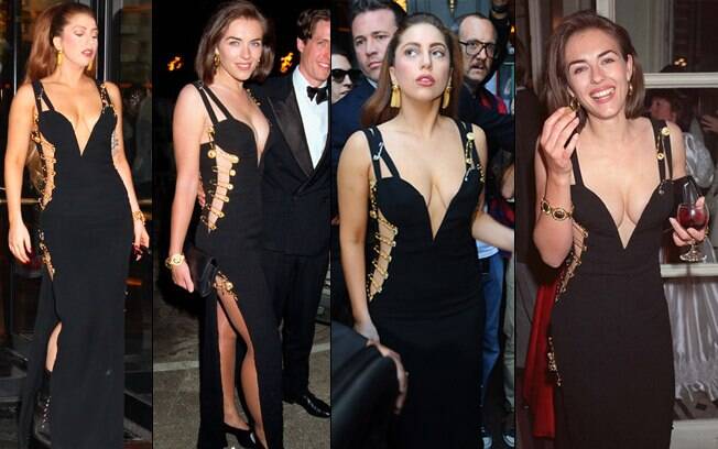 - 2 – Lady Gaga se inspirou na Elisabeth Hurley, em 1994. Qual vocês escolhem?