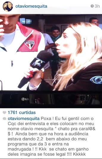 No CG de apresentação do nome de Otávio continha: Otávio Mesquita e logo abaixo, “Chato pra CAR%*&$#”. Insatisfeito, Otávio foi até seu Instagram dar uma resposta a altura.