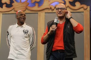 Britto Jr. entrevista Robson Caetano, durante entrevista coletiva à imprensa de “A Fazenda”
