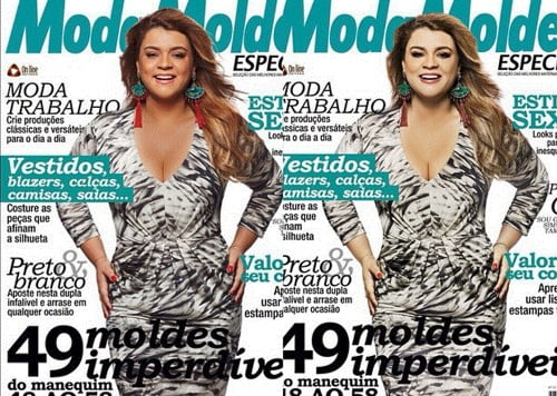 E completou: “não tem como não me indignar, pois fiz essas fotos para capa dessa revista e a mesma foi publicada sem minha aprovação e do fotógrafo. O Photoshop foi feito por conta própria. Aí está o resultado!!”.