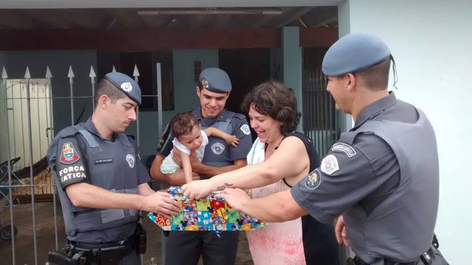 Os policias aproveitaram o momento para presentear Gabriel. Vizinhos, amigos e familiares participaram do encontro e enalteceram o trabalho da PM que orgulhou toda a sociedade Piracicabana com essa ocorrência.