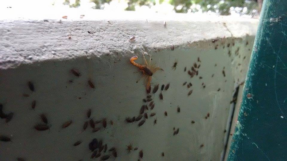 Por causa da elevação da água, escorpiões e baratas estão sendo encontrados nas proximidades da Rua do Porto como mostram as imagens feitas há pouco pelo repórter cinematográfico Valter Martins que localizou um ninho deles em uma das casas da região. Se for ver o rio, tome muito cuidado.