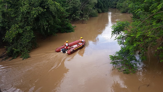 Ainda de acordo com a corporação, devido à alta do rio provocada pelas chuvas que tem caído na região, apenas o trabalho na superfície do manancial está sendo feita.