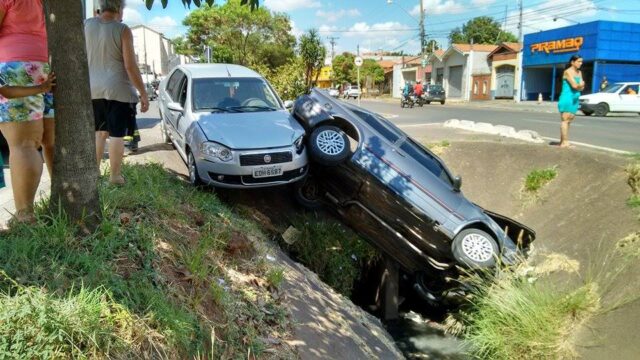 Por volta do meio dia de ontem (19), dois carros, um Ford Escort e um Fiat Siena, caíram no córrego Itapeva na Avenida 31 de março, em Piracicaba. Situações como esta são frequentes no local.