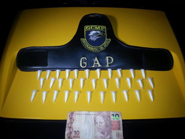 Na primeira ocorrência, atendida pela viatura 08 dos guardas Ayala, Alexandrino e Garrido, um menor de idade de 16 anos foi avistado no bairro Boa Esperança, zona norte, tentando jogar cinco eppendorfs com pó branco caracterizando cocaína. Ele foi abordado e quando questionado sobre o material, revelou que estava comercializando cada unidade por R$ 10 e indicou onde havia escondido mais 28 porções da mesma droga. O material foi apreendido e encaminhado para exame laboratorial para confirmar a suspeita.