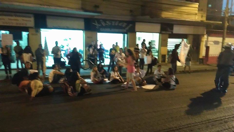 Um grupo de 15 pessoas aproximadamente faz no começo da noite desta quinta-feira (23), um protesto “curioso” pedindo o fim da Polícia Militar em um ato sobre a merenda escolar. O trânsito na Avenida Armando Salles de Oliveira, no centro, está parcialmente interditado no sentido Correios à Rodoviária.