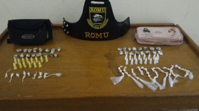 Na abordagem pessoal a um deles, dentro de uma pochete, 16 porções de maconha, 14 pinos de cocaína e 11 de crack foram localizadas. Já com o outro, dentro de uma bolsinha, 16 porções de maconha, 16 pinos de cocaína e 51 pedras de crack foram achadas.