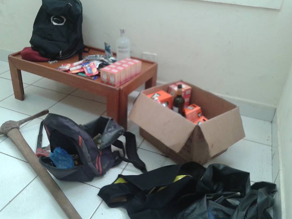 Em uma mata próxima, os indivíduos foram presos e as mercadorias roubadas recuperadas junto com ferramentas usadas para arrombar o estabelecimento.