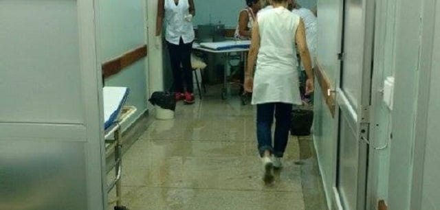 O temporal começou por volta das 16 horas da tarde e chegou com força. Com isso, as calhas da unidade não suportaram e choveu dentro. A enxurrada da rua também adentrou a unidade.