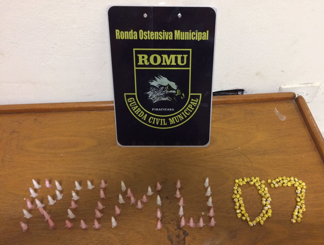Na primeira, durante um patrulhamento pela Rua Alfredo Moreira Pinto, bairro Jardim Planalto, a equipe 07 da ROMU (Ronda Municipal), apreendeu um adolescente com 50 pinos de cocaína e 101 porções de crack. Ele confessou a prática de tráfico de drogas.