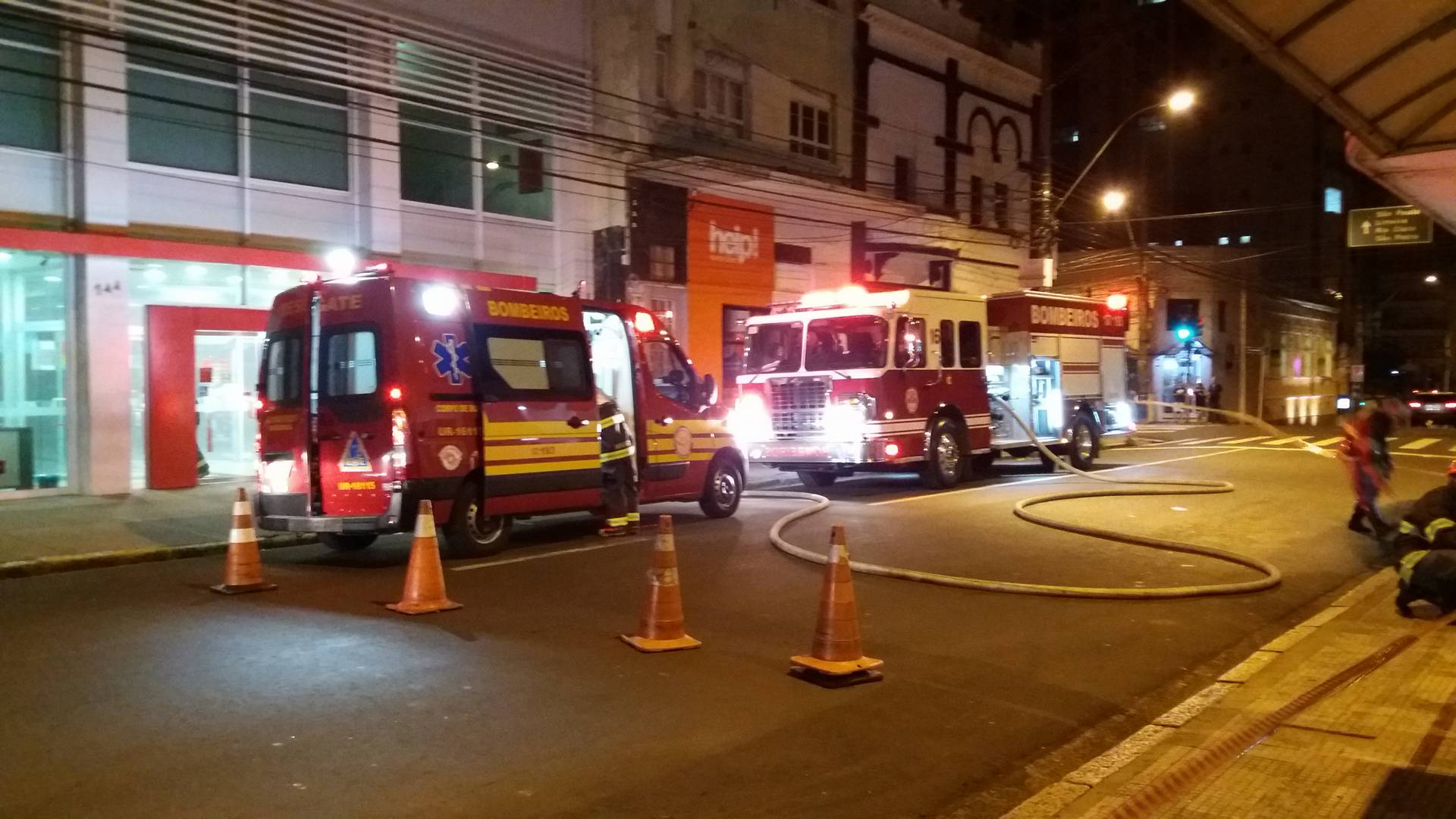 Por causa do incêndio, os bombeiros interditaram a frente do Santander e desviou o trânsito para a Praça José Bonifácio.