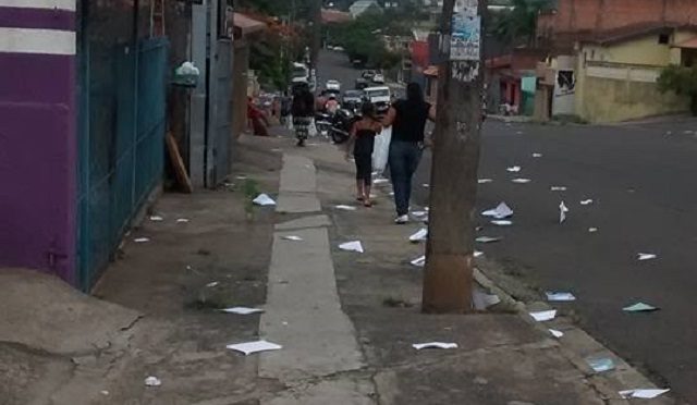 “Essa é a situação da Rua Peixoto Gomide, próximo à Escola Maria de Lourdes Silveira Consentino. Os alunos, ao saírem, despedaçaram suas apostilas e cadernos na rua. É vergonhoso ver o que essa ‘molecada’ faz com o dinheiro do povo e amor ao próximo não existe mais porque amanhã quem terá de limpar essa sujeira não será eles e sim as batalhadoras varredores de rua. É triste ver que nosso país está na mão dessa juventude. O que o futuro nos reserva?”, diz a mensagem.