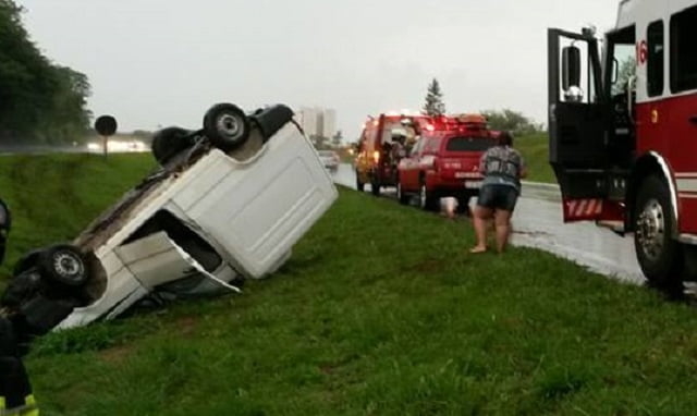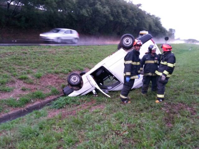 Uma Fiat Fiurino branco capotou por volta das 18h30 desta sexta-feira (09), no acesso à Piracicaba pela Rodovia Luiz de Queiroz. O motorista e uma passageira ficaram presas às ferragens.