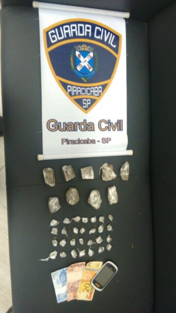 Segundo a corporação, a primeira ocorrência foi às 09 horas quando, em patrulhamento pela Avenida Edne Rontani Bassetti, quase na esquina com a Rua Honduras, no bairro Água Branca, a viatura com os guardas Fábio e Anderson avistou um suspeito. Em revista pessoal, foi localizado um saco plástico contendo 25 porções de maconha prontas para a venda.