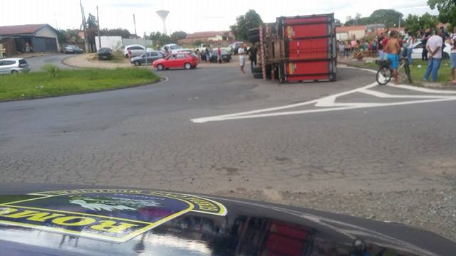 O caminhoneiro deu fuga em alta velocidade, acessou o distrito de Santa Terezinha e, em uma rotatória da Avenida Corcovado, próximo ao supermercado Ideal, acabou tombando. Os ladrões fugiram.