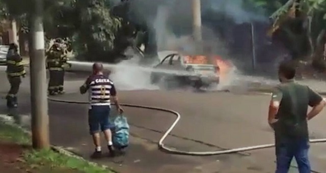 Um Chevrolet Classic pegou fogo nesta tarde (17), em Piracicaba. Ninguém ficou ferido.