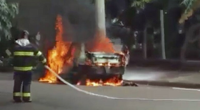 Acionado, o Corpo de Bombeiros apagou as chamas. Ainda não se sabe o motivo do acidente. O carro teve perda total.