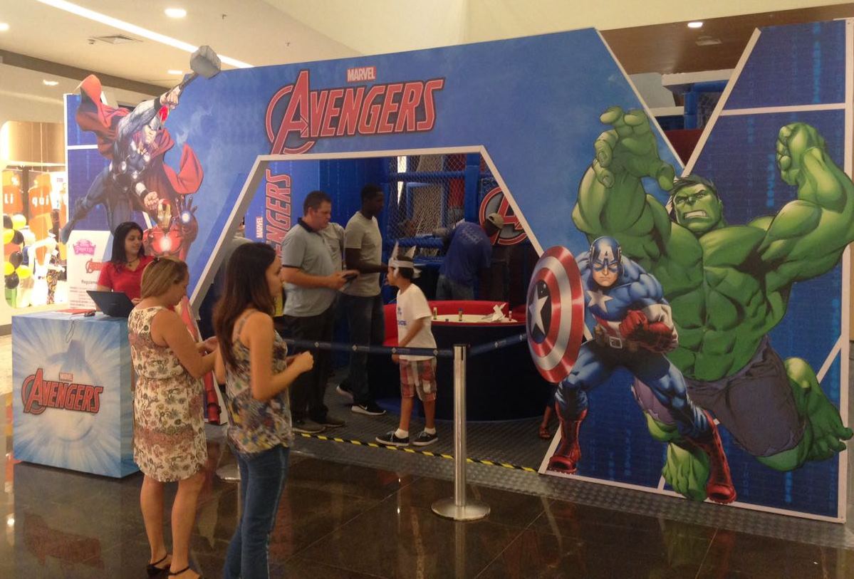 A estrutura do evento é dividida ao meio, recebendo os dois mundos por meio de portais imponentes. De um lado, os super-heróis da Marvel desafiam a garotada com brincadeiras interativas do Capitão América, Hulk, Homem de Ferro e Thor.