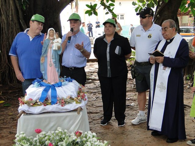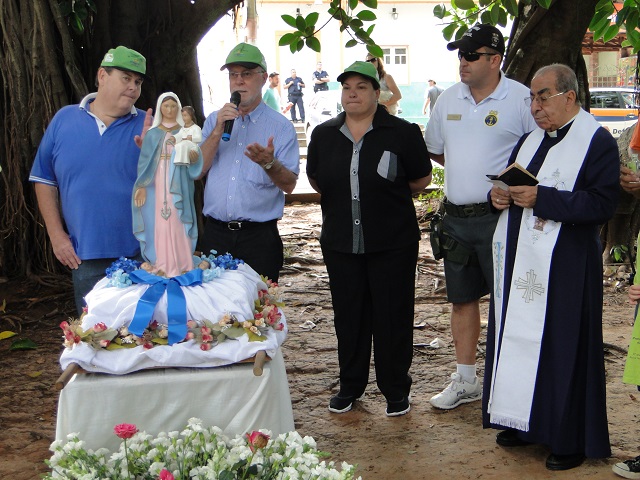 Para dar a bênção aos nagevantes, o monsenhor Jorge Simão proferiu algumas palavras e a imagem de Nossa Senhora dos Navegantes foi carregada em andor até o barco que a transportaria por autoridades da cidade presentes ao evento.