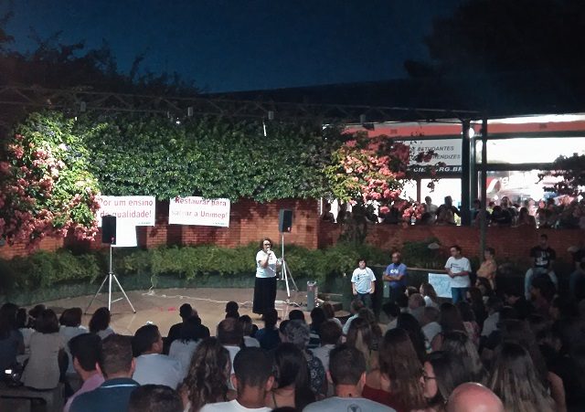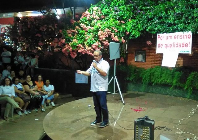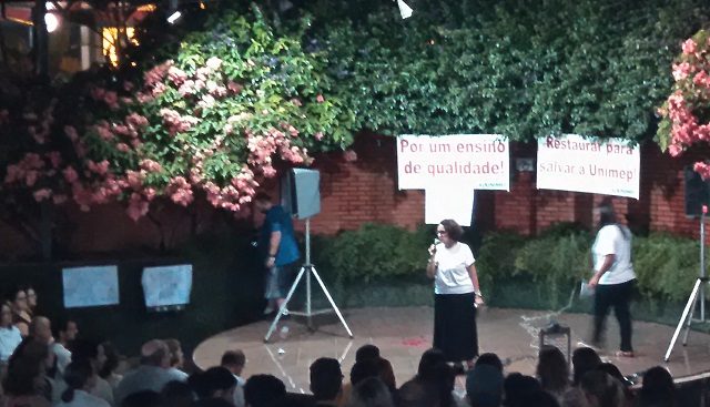 Cerca de 500 docentes e alunos da Unimep (Universidade Metodista de Piracicaba) promoveram um ato na noite de ontem (09), contra a administração da instituição. Eles querem participar das decisões que influenciam a qualidade de ensino. Houve apresentação de teatro e discursos de professores.