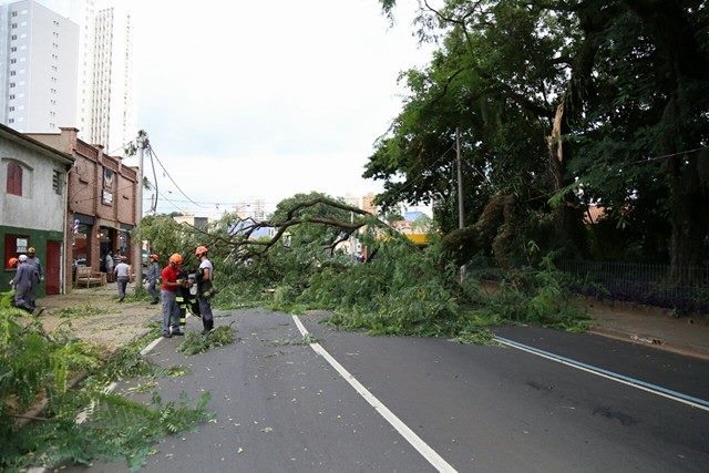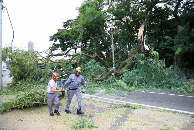 A remoção da árvore deve levar horas. Um fio de energia foi atingido e por isso a CPFL foi acionada.