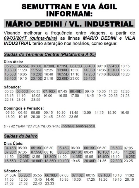 A Semuttran (Secretaria de Trânsito e Transportes) e a concessionária Via Ágil, responsável pelo transporte público em Piracicaba anunciaram mudanças nas linhas que atendem aos bairros Mário Dedini e Vila Industrial, na zona norte.