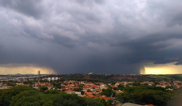 A leitora Paula Tanno Borelli, moradora da Vila Rezende, fotografou por volta das 16h40 a chuva chegando a cidade. A foto ilustra esta notícia.