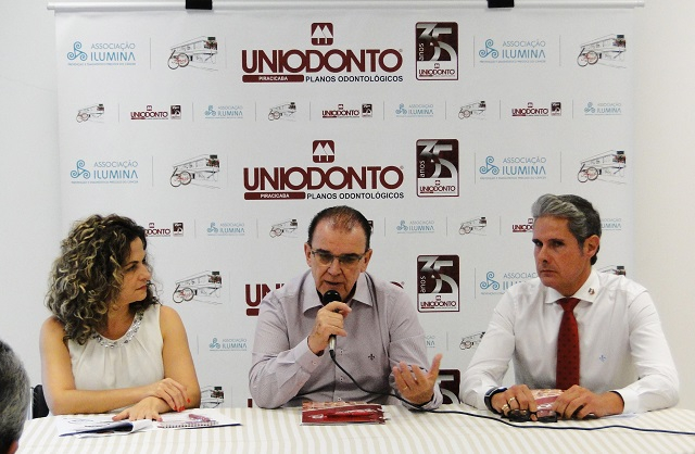 A Uniodonto Piracicaba reuniu a imprensa ontem (23), para divulgar as ações comemorativas aos seus 35 anos de fundação. Os trabalhos foram coordenados pelo presidente da cooperativa de dentistas, Cláudio Zambello, acompanhado do professor Guilherme Pessanha Henriques, diretor da Faculdade de Odontologia de Piracicaba, e de Adriana Brasil, coordenadora de eventos da Associação Ilumina.