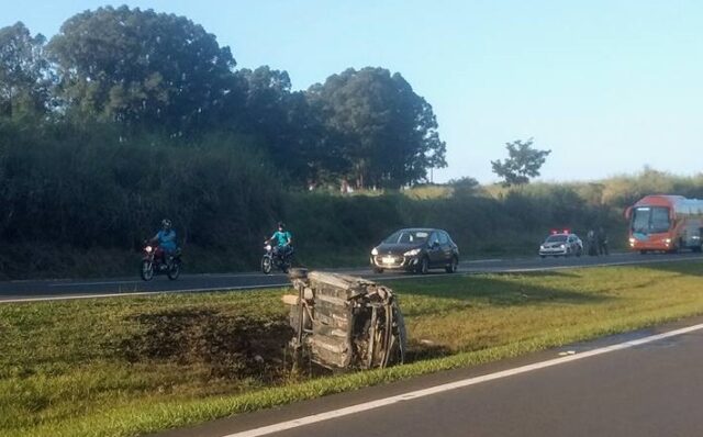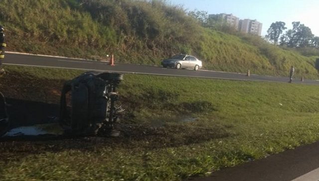 Um carro capotou e pegou fogo na tarde desta quinta-feira (25), na Rodovia Luiz de Queiroz, em Piracicaba. O motorista conseguiu sair e não precisou ser socorrido.