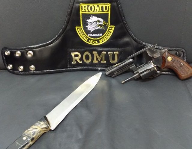 Em revista pessoal os guardas encontraram um revólver calibre 38 com numeração raspada, cinco munições intactas e uma deflagrada, além de uma faca.