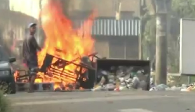 Durante a saída das viaturas foram colocadas barreiras com pneus, sofás e lixo e ateado fogo nesses materiais com o objetivo de obstruir a avenida Antônio Mendes de Barros Filho. As pessoas que montaram essa barreira foram dispersadas com gás de pimenta e bala de borracha. O trânsito foi então liberado.