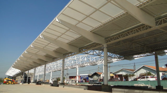 As obras do novo Terminal Vila Sônia, em construção pela Prefeitura de Piracicaba, estão na fase de instalação das telhas metálicas, tipo sanduíche, e de cobertura em policarbonato. Com as obras mais avançadas, já é possível ver também os contornos da nova entrada, dimensões da plataforma de embarque e bilheterias.