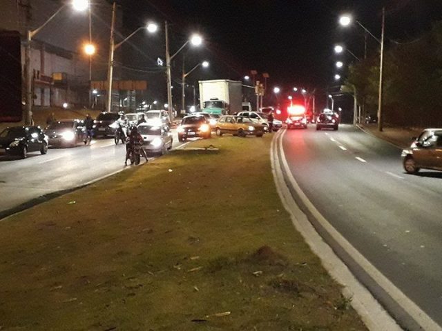 O acidente foi por volta das 21 horas na Avenida São Paulo. A suspeita é de um dos carros freou bruscamente por causa de uma valeta e os outros três que vinham atrás não conseguiram parar a tempo.