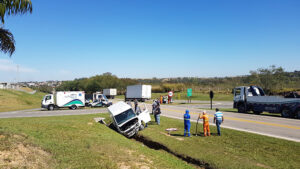 De acordo com o motorista da Van, ele seguia sentido Campinas quando atingiu o Voyage que cruzou a rodovia. Em seguida, o caminhão que vinha no sentido oposto também atingiu o veículo.