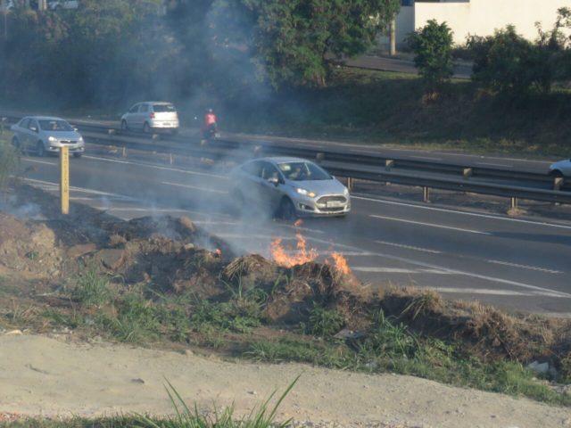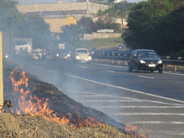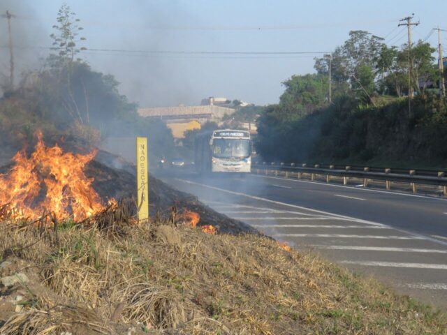 Devido a fumaça, há risco de acidente nos dois sentidos. A orientação é de que os motoristas redobrem a atenção ao passar pelo local.