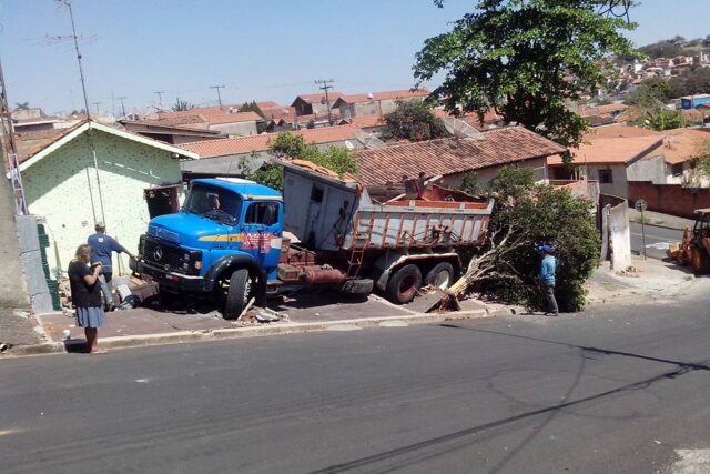 O acidente foi na Rua Mariano da Costa, no bairro Jaraguá, quando, por motivos a serem esclarecidos pela Polícia Civil, um caminhão desceu a rua, invadiu a calçada e derrubou uma árvore e a frente de uma casa. A suspeita é de que o veículo tenha perdido o freio.