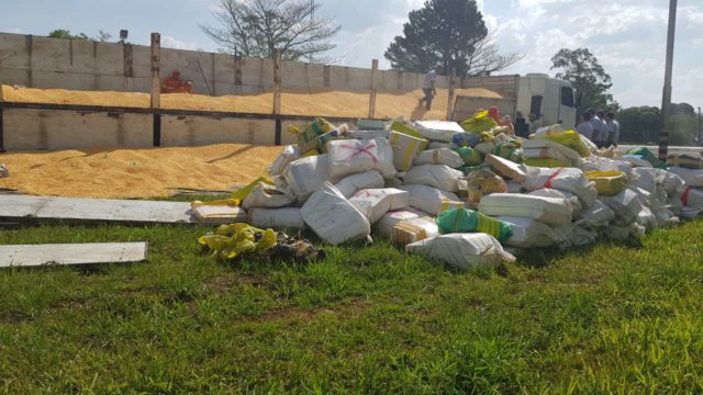 Segundo as primeiras informações, após ser abordado no km 42 da SP-101, o caminhão foi levado até a base da PM onde parte do milho foi tirado da carroceria e vários pacotes grandes de maconha foram localizados.