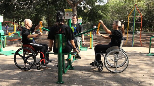 Os frequentadores cadeirantes ou não podem utilizar os sete equipamentos para condicionamento físico, que trabalham os principais grupos musculares, no mesmo espaço. Os equipamentos híbridos representam um avanço na área da atividade física, encampando características de máquinas convencionais e adaptadas em um só aparelho.