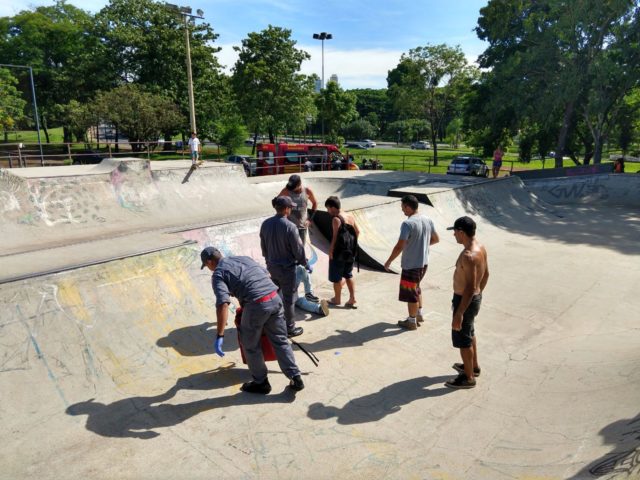 Na ocasião, um homem de 30 anos caiu do skate e bateu a cabeça na quina da pista.