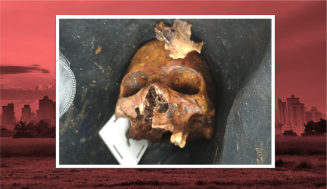 Assim que a polícia chegou ao local, flagraram o suspeito com uma sacola nas mãos. Foi realizada uma abordagem e, dentro da sacola, as autoridades encontraram um crânio humano.