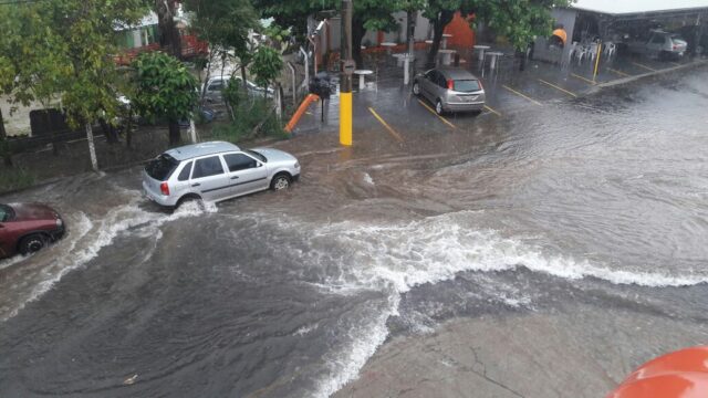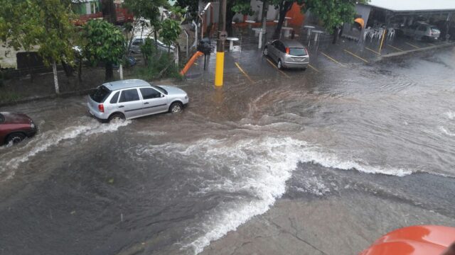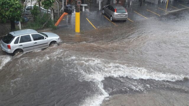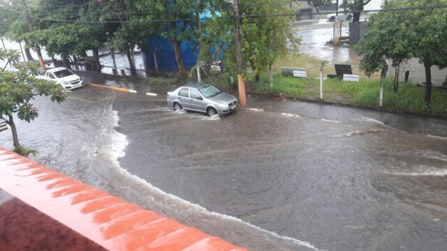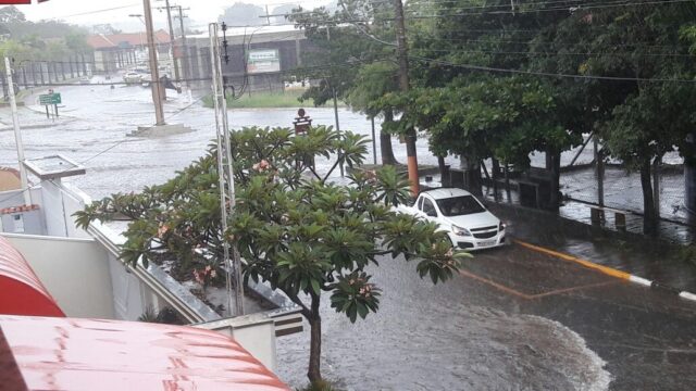 Uma forte pancada de chuva alagou algumas áreas da cidade de São Pedro na tarde desta segunda-feira (22). Um dos vários pontos de alagamento registrados foi logo na entrada da cidade, por volta das 14 horas.