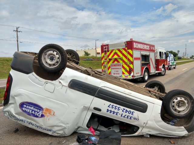 A vítima de 48 anos — que dirigia um Fiat Fiorino da empresa Divino Tempero — perdeu a visibilidade e, consequentemente, o controle do veículo, vindo a capotar por diversas vezes na pista.