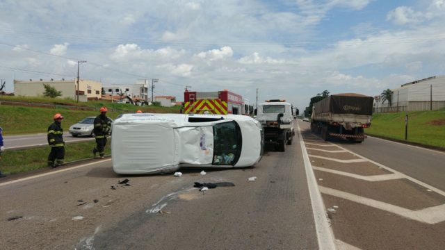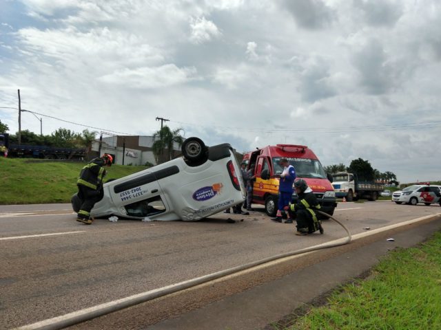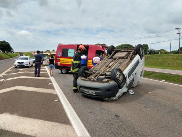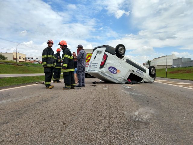 Condutora perde controle de veículo e capota na Rodovia do Açúcar