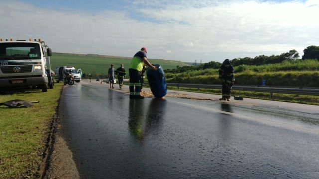 Foram acionadas ao local o Corpo de Bombeiros, Polícia Rodoviária e a concessionária que administra aquele trecho da rodovia. Os responsáveis ainda se encontram no local à espera da CETESB (Companhia Ambiental do Estado de São Paulo), para averiguação de possíveis danos ambientais.