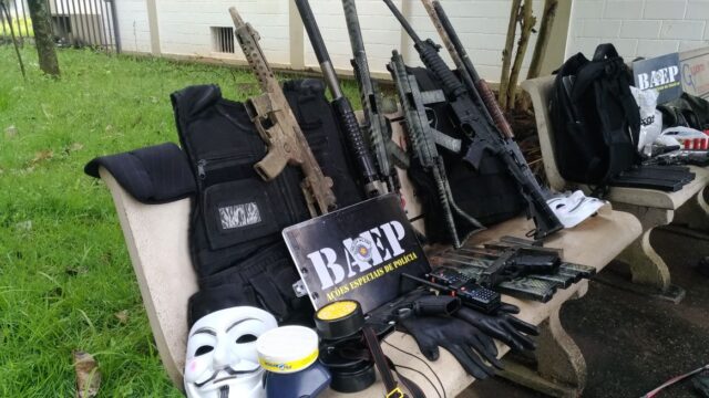 Ao todo, foram apreendidas 11 armas, sendo um fuzil e três metralhadoras. Foi apreendido também uma grande quantidade de munições e explosivos. Dez viaturas e 40 Policiais Militares se envolveram na ação. Nenhum policial se feriu.