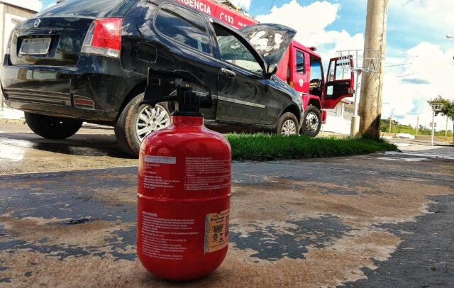 Um vizinho tentou fazer a extinção do incêndio com o próprio extintor do veículo, porém não conseguiu. O extintor chegou a ficar totalmente descarregado e o fogo continuou a se propagar na parte frontal do automóvel.
