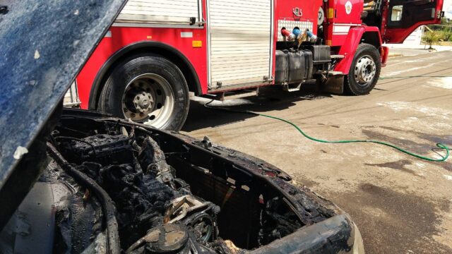 Uma vizinha pegou um esguicho para tentar apagar o fogo, porém, em suas próprias palavras, “quanto mais água jogava no veículo, mais o fogo se propagava”.