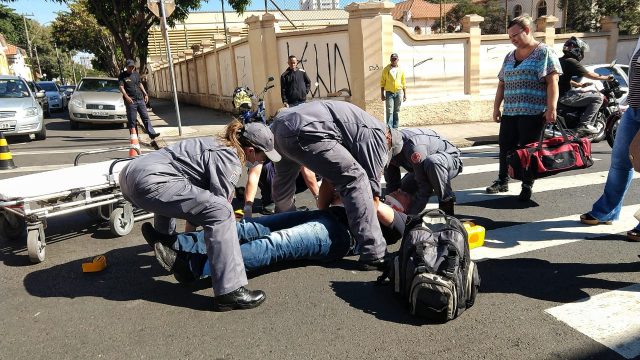 Um motorista colidiu contra um motoqueiro no início da tarde desta segunda-feira (21), em Piracicaba. O acidente ocorreu por volta das 13h40, na esquina da Rua XV de Novembro com a Rua Bom Jesus.