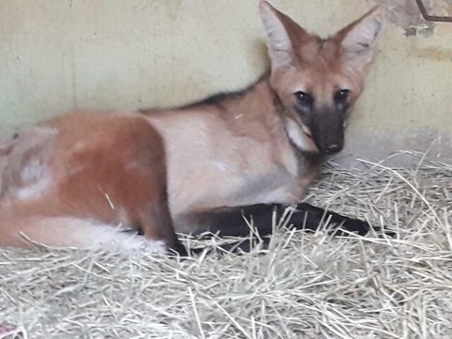 A lobo-guará também é jovem e possui cerca de um ano e meio. A “lobinha” foi vítima de um atropelamento em uma rodovia próxima à cidade de Jaboticabal e acabou socorrida pela própria condutora do veículo. O animal possuía lacerações de pele, diversas fraturas ósseas e perda de um canino. De acordo com a bióloga do zoológico, “ela encontra-se em recuperação das diversas lesões, sem possibilidade de reintrodução a natureza”.